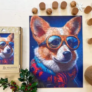 Ha létezik kutya, aki puszta jelenlétével képes feldobni bármilyen borús napot, az bizony Colin, a corgi. Ez a lélegzetelállítóan színes és karakteres fa puzzle egy olyan szerethető kis hőst jelenít meg, aki garantáltan elvarázsolja a gyerekeket és a felnőtteket egyaránt. Colin barátságos tekintetével, vidám pofijával és menő téli öltözetével azonnal lopja be magát mindenki szívébe.