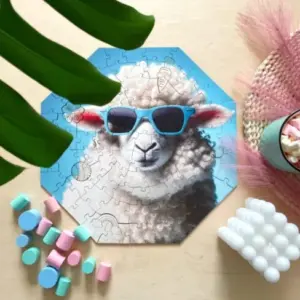 Ez a vidám, színes hangulat tökéletesen megelevenedik ebben a különleges fa puzzle-ben, amely egyszerre humoros, esztétikus és prémium minőségű.