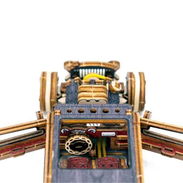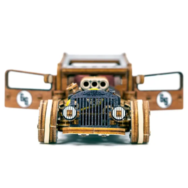 A Hot Rod puzzle-t lézervágott, precízen illeszkedő faelemekből állították össze, amelyeket ragasztó nélkül lehet összeépíteni. Az összeszerelés nemcsak technikai kihívás, de kreatív élmény is, amely során minden egyes alkatrész a helyére kerül – miközben fokozatosan bontakozik ki előtted a klasszikus autó teljes képe.