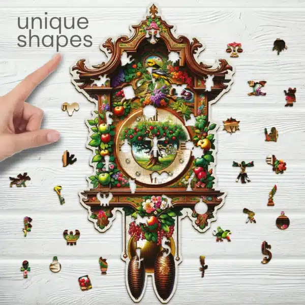 A Kakukkos óra fa puzzle egyik különlegessége a benne található egyedi formájú darabok, amelyek izgalmasabbá és kreatívabbá teszik a kirakás élményét. Ezek a különleges elemek nem csupán a képet alkotják, hanem saját jelentéssel bírnak, és különleges szimbolikát is hordoznak.