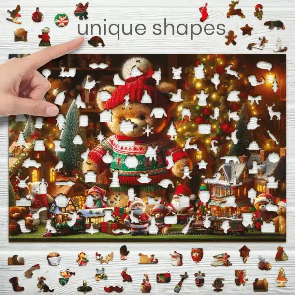 A Karácsonyi plüssmackó kirakó darabjai egyediek, és mindegyikük különleges meglepetést rejt. A darabok között számos formát találhatunk, amelyek az ünnep szimbólumait idézik: kisvonatokat, plüssállatokat, karácsonyi csillagokat és díszeket. Az egyedi formák nemcsak esztétikai élményt nyújtanak, hanem a kirakás folyamatát is szórakoztatóbbá és kihívástelibbé teszik.