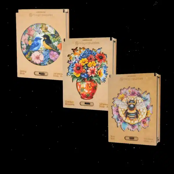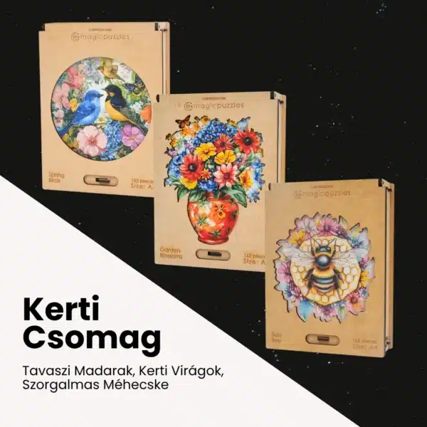 Engedd be otthonodba a tavasz és a kert békés, ébredő hangulatát! Az AZ Puzzle Kerti csomag egy exkluzív kollekció, amely három gondosan válogatott prémium fa puzzle remekművet tartalmaz. Akár magadnak keresel hosszantartó, stresszoldó játékot, akár egy rendkívüli és környezetbarát ajándékot szeretteidnek, a Kerti csomag a tökéletes választás.