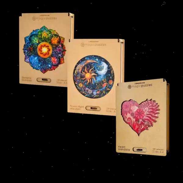 Engedd be otthonodba a mandalák nyugalmat árasztó hangulatát! Az AZ Puzzle Kerti Csomag egy exkluzív kollekció, amely három gondosan válogatott prémium fa puzzle remekművet tartalmaz. Akár magadnak keresel hosszantartó, stresszoldó játékot, akár egy rendkívüli és környezetbarát ajándékot szeretteidnek, a Mandala csomag tökéletes választás.