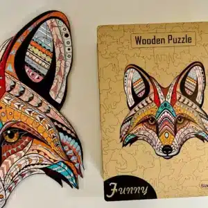 A puzzle minden egyes eleme prémium minőségű fából készült, így tartós és különlegesen kellemes tapintású. Az egyedi vágású darabok között nemcsak klasszikus formák, hanem különleges alakzatok is megtalálhatók, amelyek extra élményt adnak a kirakás során. Akár tapasztalt kirakó vagy, akár most fedezed fel a fa puzzle-k világát, a Mintás rókafej kihívásként és örömforrásként is tökéletes választás.