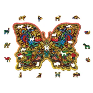 Csodáld meg a kecsesen festett szárnyú pillangót, amely a színek széles spektrumában pompázik. Ez a pillangó alakú puzzle nem csupán egy hétköznapi szabadidő tevékenység; a természet eleganciájának és ragyogásának élénk tablója.