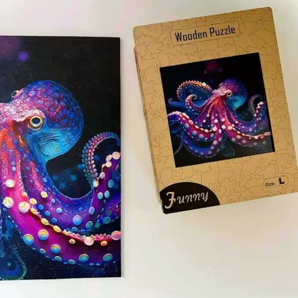 A Polip puzzle a tenger mélyének titokzatos világát tárja eléd. Egyedi fa darabokkal, köztük állat- és virágformákkal, elegáns dobozban. Élénk színei és lenyűgöző mintázata minden kirakást különleges élménnyé varázsol.