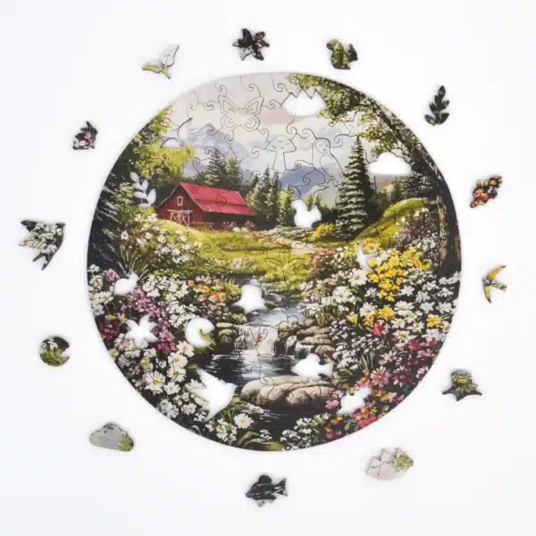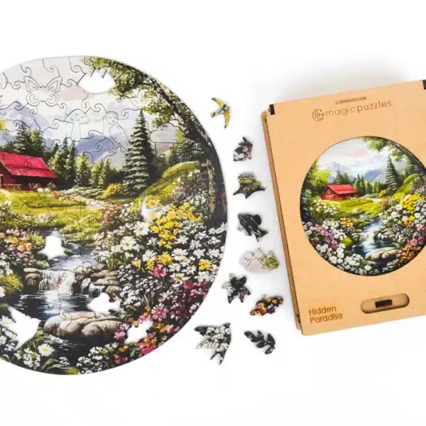 Egy titkos menedék a hegyek és rétek között, ahol az idő lelassul, és a nyugalom veszi át az uralmat. Ez a lenyűgöző fából készült kirakós azoknak szól, akik békés visszavonulásra, friss hegyi levegőre és egy csobogó patak megnyugtató hangjára vágynak. Veszítsd el magad ebben a Rejtett Paradicsomban.