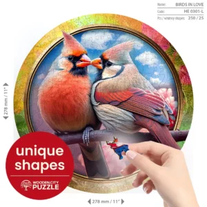 A Szerelmes madarak puzzle nemcsak egy lenyűgöző műalkotás, hanem egy különleges kihívás is a kirakósok szerelmeseinek. Az egyedi formájú darabok és a részletesen kidolgozott kép különösen élvezetessé teszik az összeállítását.
