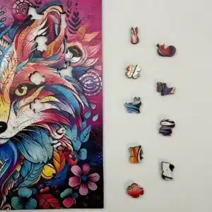 A Titokzatos róka fa puzzle egy lenyűgöző, színes és részletgazdag kirakó, amely a róka misztikus szépségét kelti életre. Elegáns fa dobozban érkezik, egyedi, fából készült darabokkal, amelyek között különleges állat- és virágformákat is felfedezhetsz. Egy puzzle, amely nemcsak kihívást, hanem igazi vizuális élményt is nyújt.