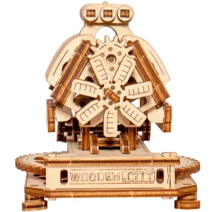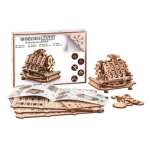 A modell körülbelül 200 lézervágott nyírfadarabból áll, amelyek ragasztó nélkül építhetők össze. A darabok precízen illeszkednek, így nincs szükség plusz kézügyességre – csak a logikádra, türelmedre és a kiváló minőségű nyírfalemezre. A gyártó szerint 3–4 óra alatt megépíthető ez a mechanikai műalkotás – tökéletes időtartam egy izgalmas délutáni programhoz.
