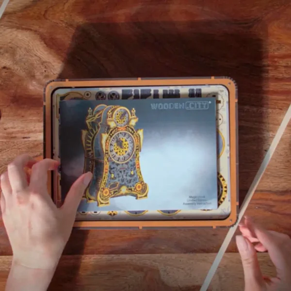 A 149 darabos, lézervágott nyírfalemezből készült modell összeszerelése körülbelül 5 órát vesz igénybe. A darabok precízen illeszkednek, ragasztóra nincs szükség. Mint egy kreatív szabadulószoba darab, minden lépés egy új felfedezés – szereld össze, majd add át az indítókulcsot, és figyeld, hogyan indul be a billegő pendulum, a mutatók tánca, és az idő múlása.