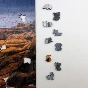 A puzzle minden részlete a természet erejét és szépségét tükrözi: a sziklák vöröses árnyalatai, a hullámok fehér tajtékja és az ég szürkés-kék tónusai olyan kontrasztot alkotnak, amely szinte életre kel a kirakás során.