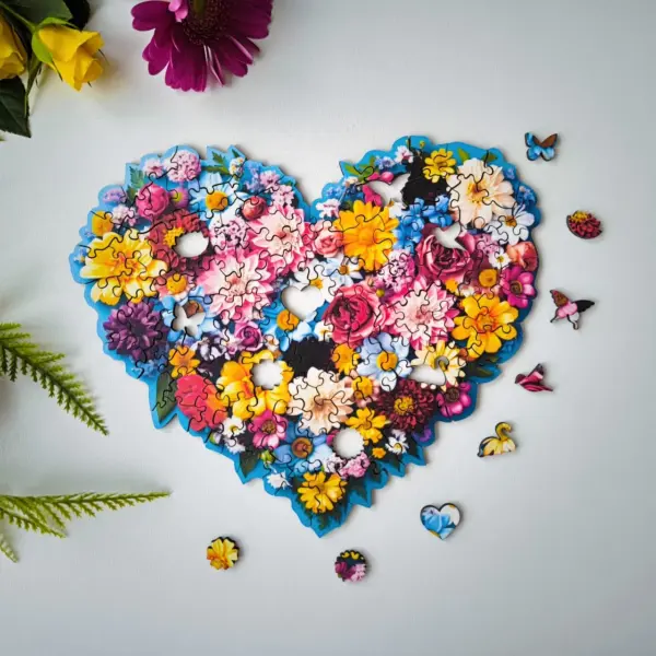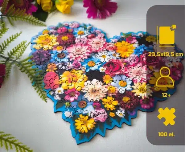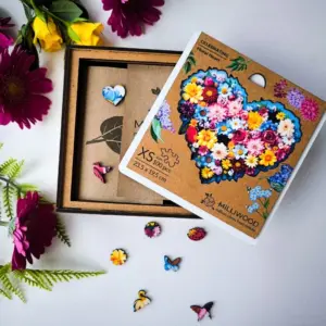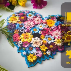 A Virágzó Szív fa puzzle egy igazán különleges fa puzzle, amelyet kifejezetten ajándékozásra terveztek. Szív alakú, gazdagon virágos mintája a szeretet, a figyelmesség és a meleg érzelmek szimbóluma – tökéletes választás, ha valami igazán személyeset szeretnél adni. 🌸❤️